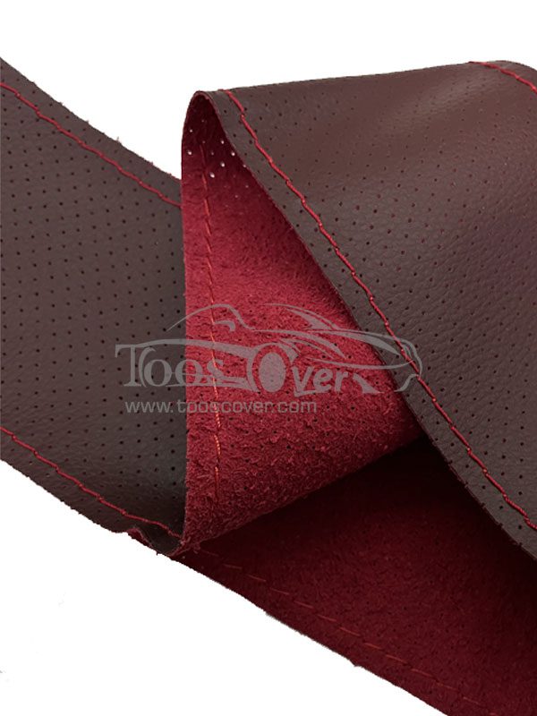 دور فرمان چرم طبیعی ،به رنگ زرشکی همراه با دوخت قرمز ،