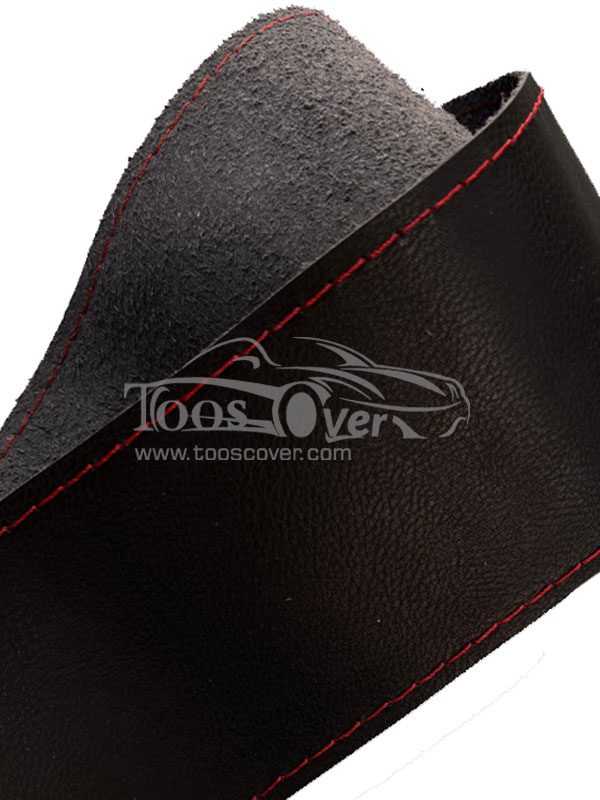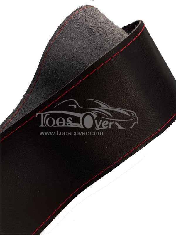 دور فرمان چرم طبیعی ،به رنگ مشکی با دوخت قرمز ،