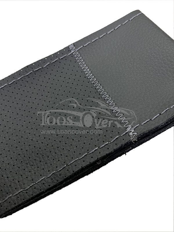دور فرمان چرم طبیعی ، به رنگ نوک مدادی همراه با دوخت سفید ،