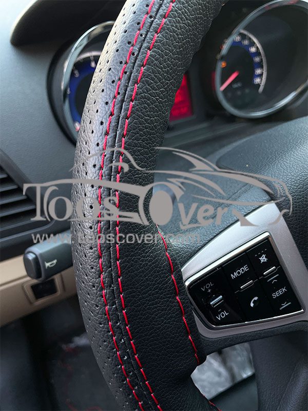 دور فرمان چرم مصنوعی، به رنگ مشکی دوخت قرمز محصول جدید و با کیفیت فروشگاه طوس کاور می باشد که دارای جذابیت ظاهری بالایی می باشد.