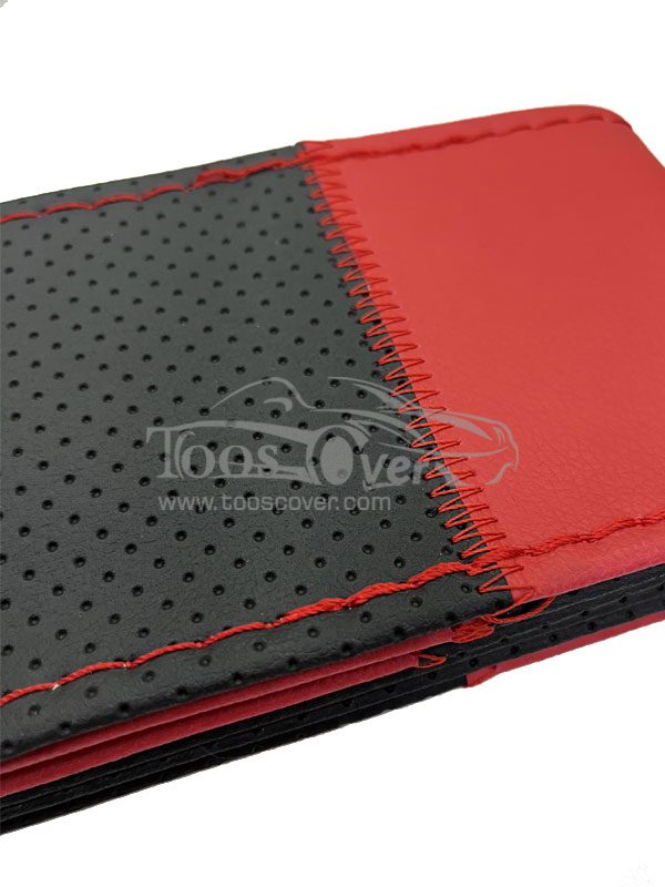 دور فرمان چرم مصنوعی ، به رنگ مشکی و قرمز ،