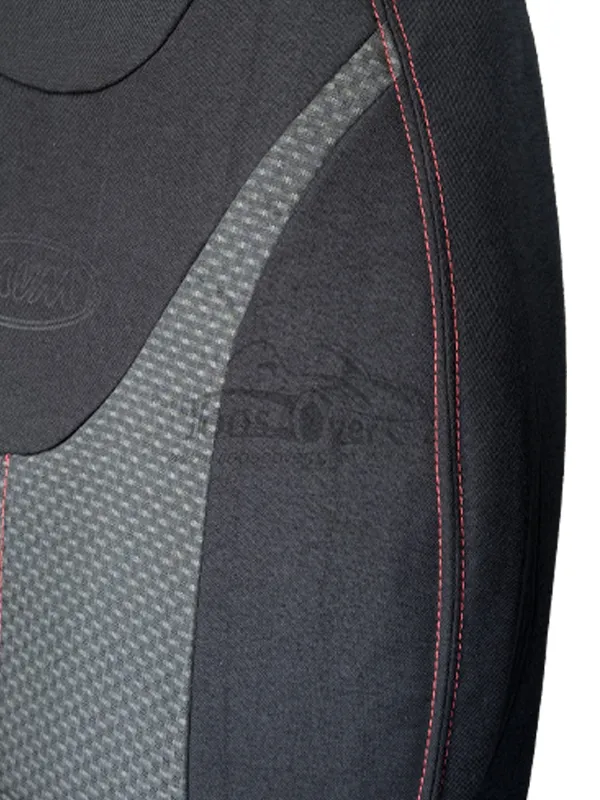 مزایای خرید از توس کاور: روکش صندلی ام وی ام 110 جدید پارچه مازراتی مشکی وسط خال طوسی دوخت قرمز