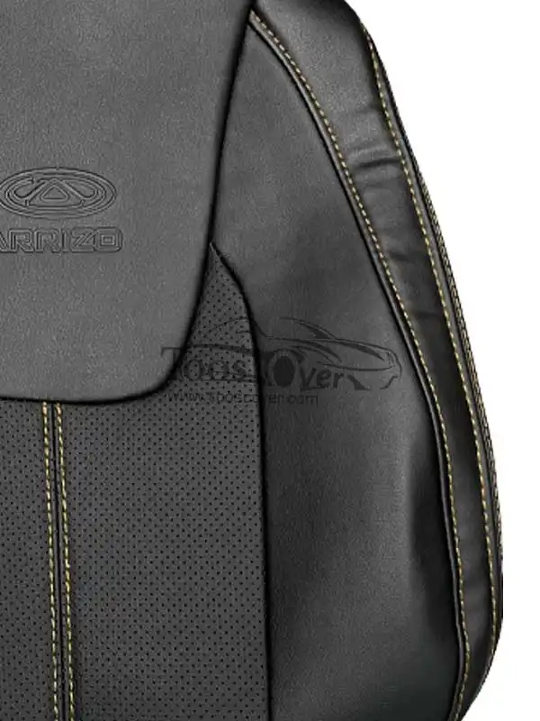 روکش صندلی خودرو چری آریزو چرم مشکی دوخت سفید