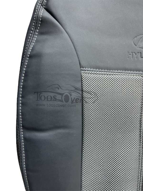 2. طراحی زیبا و استاندارد روکش صندلی خودرو هیوندا ورنا چرم وسط پارچه اسپایس طوسی – کد 11462