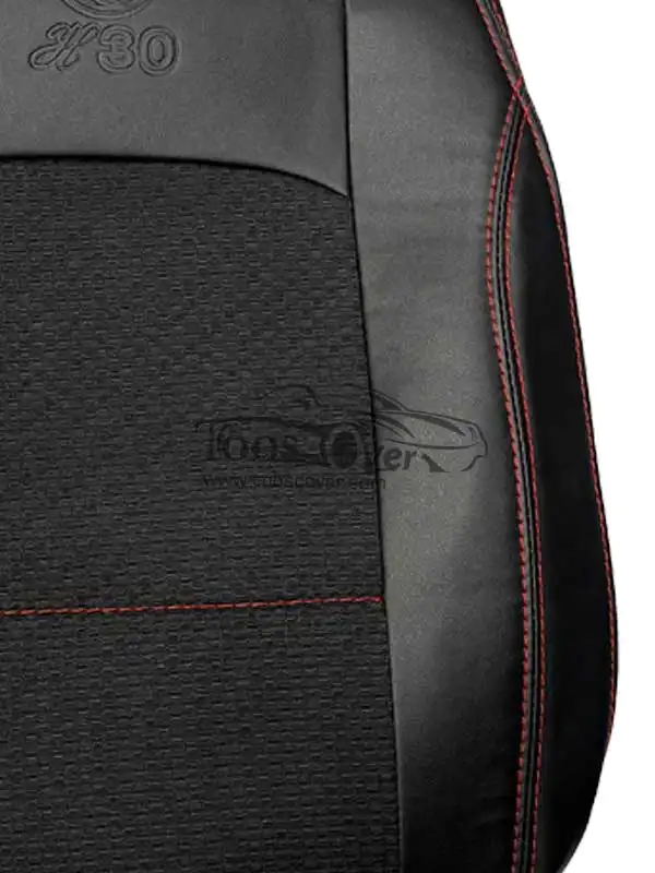 مزایای خرید از توس کاور: روکش صندلی دانگ فنگ اچ سی کراس چرم وسط پارچه مشکی دوخت قرمز
