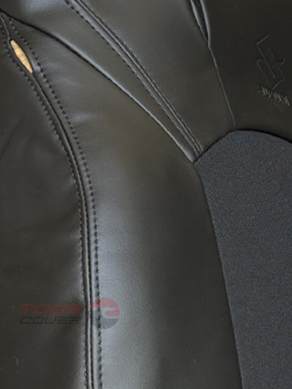 - چرم مقاوم در کنارهها: طراحی بخشهای کناری این روکش از چرم بادوام و باکیفیت انجام شده است. این نوع چرم نه تنها جلوهای شیک و کلاسیک به فضای داخلی خودرو میبخشد، بلکه در برابر ساییدگی و تغییر رنگ بسیار مقاوم است.